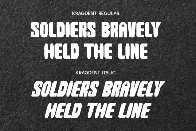 This all-caps typeface delivers a raw, aggressive energy with geometric cuts and tightly packed spacing. The forms are engineered for maximum presence and visibility, evoking themes of strength, grit, and resilience. Kragdent thrives in hostile and high-intensity contexts—whether it’s on a poster, banner, game interface, or bold logo.
