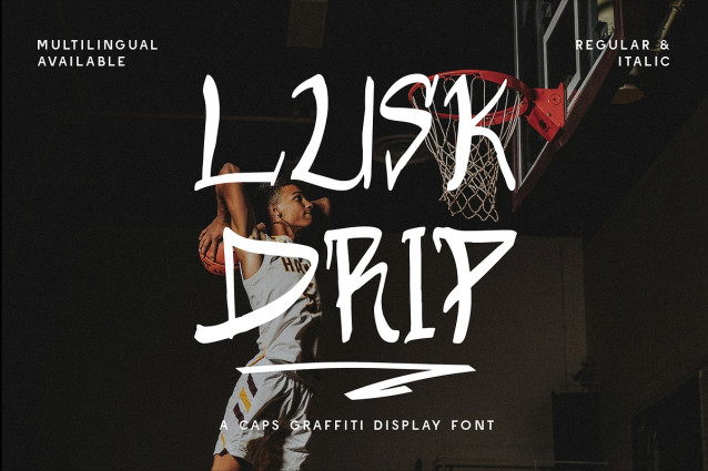 CF Lusk Drip Font a caps graffiti display font that oozes with confidence, movement, and attitude. Featuring sharp marker-style strokes, exaggerated forms, and raw drippy elements, this typeface captures the energy of urban sports, graffiti culture, and creative rebellion. From basketball posters and streetwear branding to music visuals, event flyers, and lifestyle merch, Lusk Drip dominates the scene with its bold letterforms and eye-catching presence. Available in Regular and Italic, and packed with multilingual support, it’s a slam dunk for any designer ready to flex.