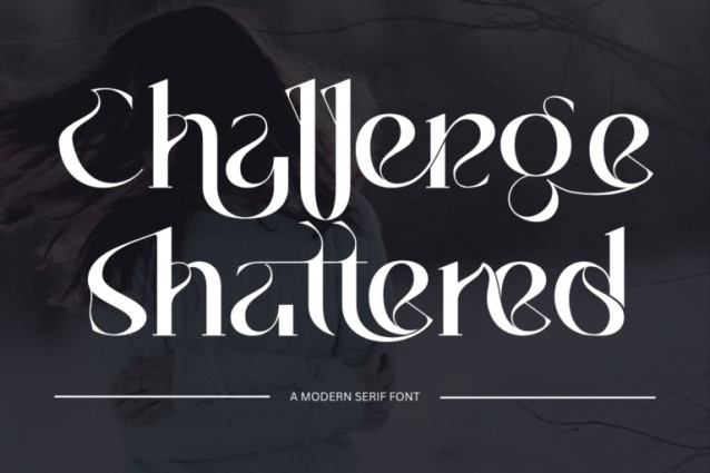 Challenge shattered – Modern Serif Font – A Dramatic & Ornamental Display Serif, a refined and expressive display serif font designed to captivate. With its high-contrast strokes, intricate curves, and ornate ligatures, this typeface brings elegance and personality to every word it forms. Inspired by classical calligraphy and infused with a modern Art Nouveau spirit, each character dances with flourish and finesse.