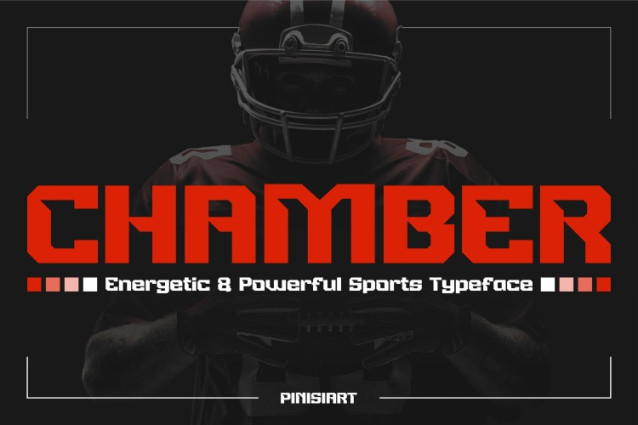 Additionally, every letter in CHAMBER feels designed for movement. The tight spacing and high-impact construction give it a powerful rhythm. Therefore, it works exceptionally well in fast-paced sports settings, energetic branding, or promotional content that demands attention.