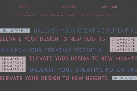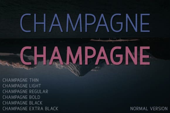 Champagne Font Family. Exuding elegance and pared-down simplicity, this collection is a paragon of minimalistic luxury. Our five unique weights subtly blend modern style with enduring charm. With its expertly crafted design, the Champagne sans serif is a flawless choice for a broad range of projects – from avant-garde logos to contemporary film posters, enhancing everything in its path. Experience the harmonious fusion of grace and straightforwardness, empowering your designs with ageless elegance. Unleash the full potential of our Champagne font family now.