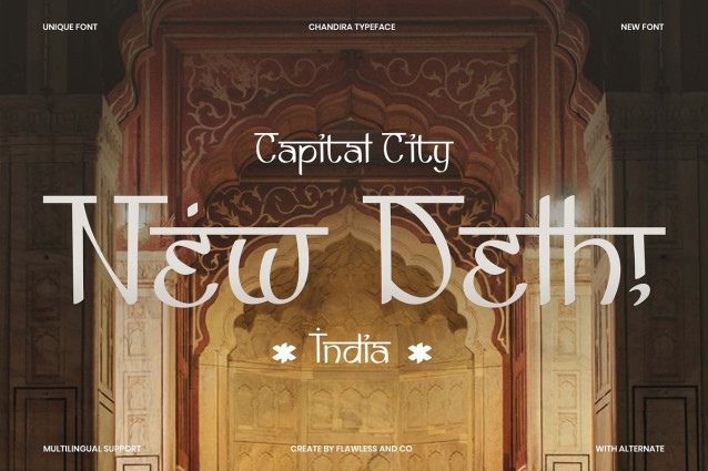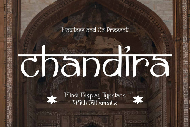Chandira Font is a Hindi-inspired display Font evoking the elegance of South Asian script forms, Chandira blends modern typography with the timeless charm of traditional Hindi aesthetics. Its graceful curves and unique alternates mimic the rhythm of ancient calligraphy while remaining crisp and versatile for contemporary design. Chandiira is more than just a font — it’s a cultural expression captured in letterforms. Perfect for creative projects that celebrate heritage, storytelling, and visual depth.