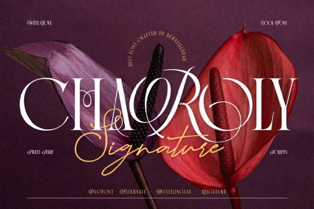 Charoly Signature Font Duo, a harmonious blend of classic elegant serif with charm of script. This duo font creating stunning combination that works effortlessly across both print and digital design project. Whether you’re designing for Christmas, weddings or any special occasion. Ideal for invitation, greeting cards, branding and many more.