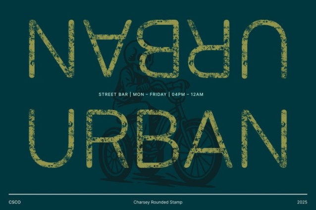 Charsey Rounded Stamp Font This is a modern sans serif font that combines sleek, rounded shapes with strong geometric construction. Its clean lines and balanced proportions convey clarity, professionalism, and confidence, making it an ideal choice for designers who want typography that communicates authority while remaining approachable.