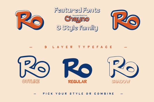 With three different variants, including Regular, Outline, and Shadow, Chayno gives you the flexibility to deliver effects that suit your design needs. You can create a clean, professional look or add a fun, playful touch to your project.