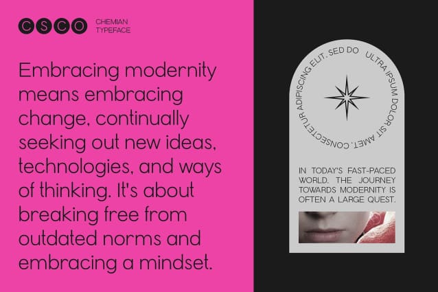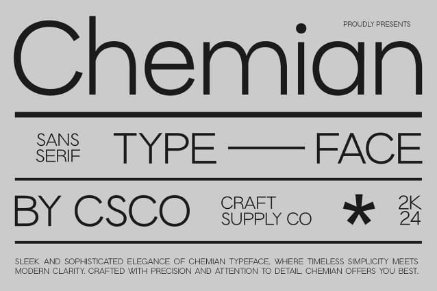 Chemian Font, our modern sans-serif font, featuring a clean, elegant, and readable design. Perfect for professional use in websites, applications, and visual identities, Chemian combines simplicity with sophistication.