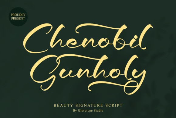 Chenobil Gunholy Script Font is a beautiful signature script font. It’s suitable for logos, branding projects, homeware designs, product packaging, mugs, quotes, posters, shopping bags, t-shirts, book covers, name cards, invitation cards, greeting cards, labels, photography, watermark, and special events.