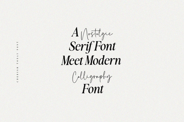 Cherish Today Font Duo. It’s a nostalgic serif font which has a classy feel. This font is suitable for a wide variety of needs in both modern and classic themes. You will also get free granola modern calligraphy, so you can easily mix and match.