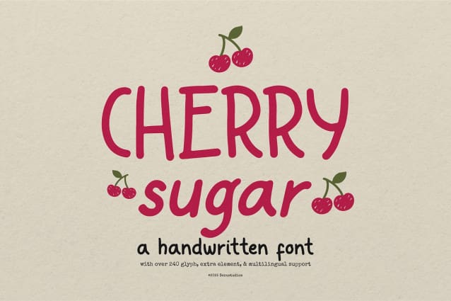Cherry Sugar | Handwritten Font, from Denustudios, suitable for any projects such as: logos, branding projects, homeware designs, product packaging, mugs, quotes, posters, shopping bags, t-shirts, book covers, name card, invitation cards, greeting cards, label, photography, watermark, special events, and all your other lovely projects that need a Handwritten Font taste.