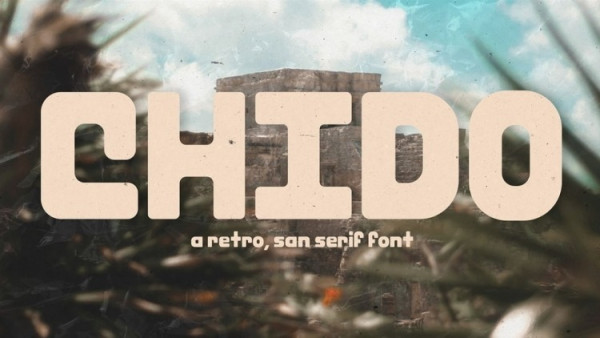 Chido Font is a bold retro sans serif font with a warm and fun vibe. It was built entirely of modular elements inspired by the eroded edges of old buildings.