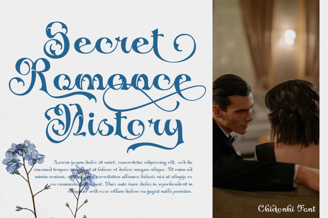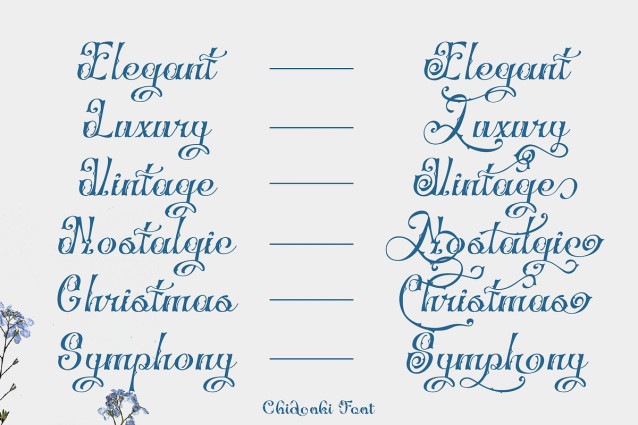Chidonki Font is a decorative script font will create a design that is gorgeous and still looks unique and bold with a classic touch. Easy readable, carefully creating every glyph, designing beautiful simple words with this font. Ideal for vintage logo, packaging, book cover, wedding invitation, brand identity, or anything old elegance touch.