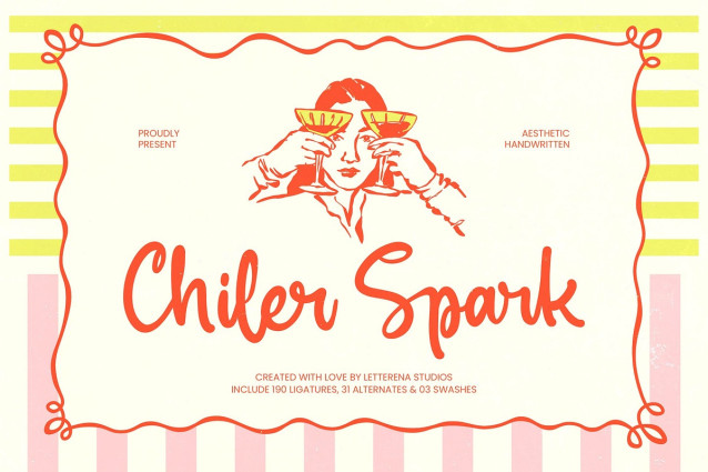 Chiler Spark Script Font a soulful handwritten script designed to bring a touch of human warmth and artistic flair to your digital canvas. This typeface captures the essence of spontaneous creativity, blending fluid movement with a polished, modern aesthetic that resonates with contemporary audiences.