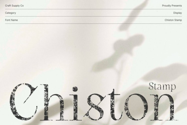 Chiston Stamp Font This is a luxury serif font designed to combine artistic expression with high-end sophistication. Its carefully crafted letterforms and elegant proportions create a refined visual presence, making it perfect for designers who want to convey creativity, prestige, and timeless style in their projects.