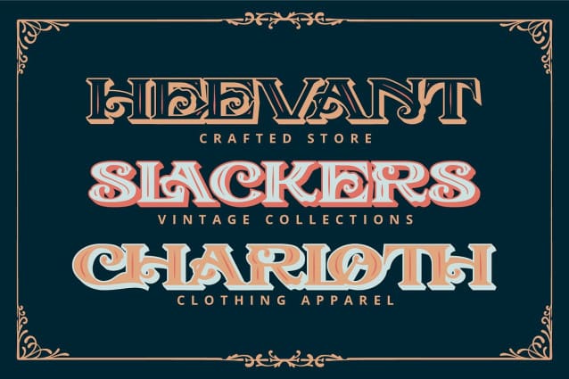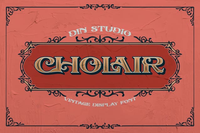 Cholair Vintage Font , a bold and distinctive display font that combines vintage elegance with modern creativity. Designed in all uppercase letters, Cholair designed in a thick weight and unique letter shapes that set it apart from the crowd. With its consistent letter size and eye-catching inline and extrude design, this font brings depth and dimension to any project. Cholair Vintage delivers both charm and impact with its timeless vintage style. This font gives ornaments as extra.