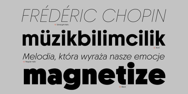 Chopin Font Family is a geometric sans-serif typeface crafted by the accomplished designer Svetoslav Simov. Known as the author of numerous sans-serif bestsellers over the past decade and the founder of Fontfabric, Simov brings his expertise to this project. Viktoria Usmanova contributes her skills as a Type Director, enhancing the development process.
