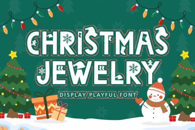 Christmas Jewelry Font is a unique and elegant display font. It comes with uppercase, lowercase, numbers, punctuation, and multilingual support. It is perfect for use on Christmas, Christmas greetings, parties, festivals, birthdays, winter, new year, posters, prints, banners, branding, stickers, and more.