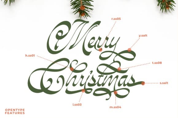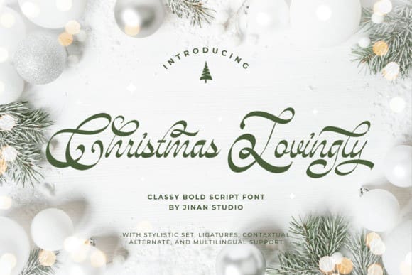 Be it chirpy Christmas cards, welcoming invitations, or charming logos, this font tightly laces sophistication and playfulness. Blending refined curves and whimsical alternates, it builds an enchanting festive air around your creations. “Christmas Lovingly” vaunts an array of stylistic sets, contextual alternates, and multilingual characters, adding versatility and a smooth finesse to any language it is expressed in.