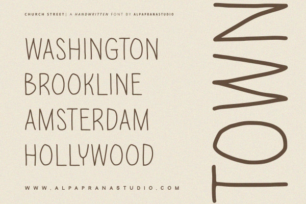 Chruch Street Font is a handwritten display font with natural and modern feels. It will be perfectly used for Branding, Logo Design, Lettering, Logotype, Clothing, Poster, magazine, packaging, posters, shopping bags, t-shirts, book covers, photography, special events and other design project.