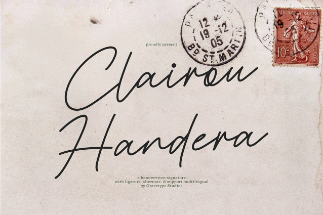 This font is used only for demos (Demo license). If you want to use this font for commercial use please contact: https://creativemarket.com/gracetype_studio/292005953-Clairou-Handera-Handwritten-Script