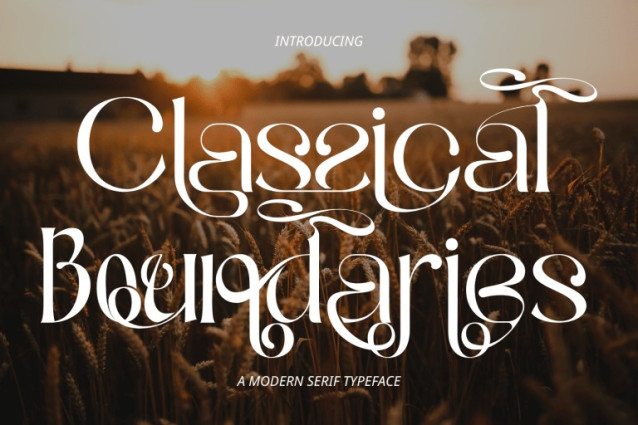 Classical Boundaries – Modern Serif Font, a sophisticated Modern Serif Display Font that blends timeless elegance with contemporary artistry. Featuring graceful curves, sharp serifs, and stylish decorative swashes, this font is designed to add luxury and refinement to any design project. Perfect for branding, editorial layouts, invitations, fashion titles, and artistic visuals, Classical Boundaries captures a perfect balance between classical beauty and modern design sensibility.