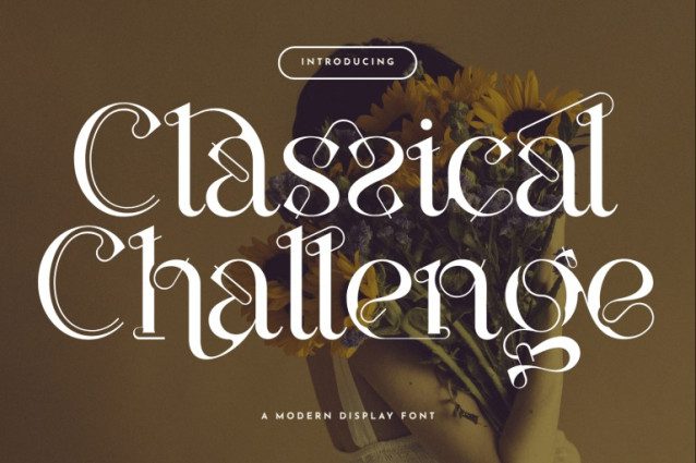 Classical Challenge Font, a refined and artistic Modern Serif Display Font inspired by classic Gothic elegance and vintage craftsmanship. The font combines delicate strokes, sharp edges, and ornamental details to create a timeless yet modern appeal — perfect for projects that demand sophistication and character.