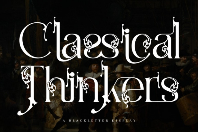 Classical Thinkers – Baroque Font – Classical Decorative Serif Font, a timeless decorative serif display font that embodies classical beauty and intellectual refinement. Inspired by Baroque artistry and Renaissance philosophy, this font is designed for those who seek sophistication and historical grandeur in their creative projects. Featuring elegant curves, ornamental details, and harmonious symmetry, Classical Thinkers stands out as a refined choice for book covers, editorial layouts, luxury branding, art exhibition posters, and more.