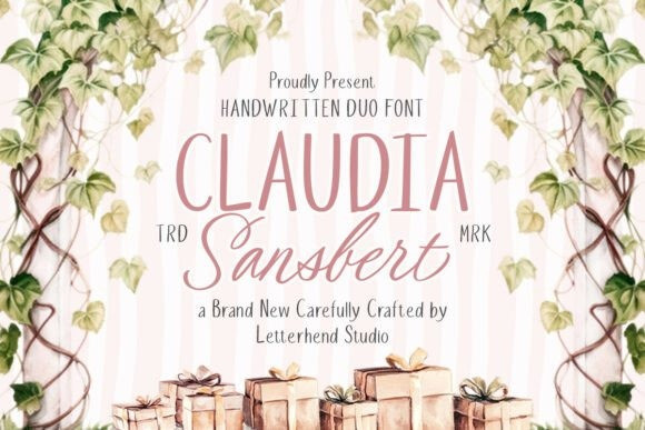 The combination of the strong, simple all-caps sans-serif (Claudia in the preview) and the flowing, charming handwritten script (Sansbert in the preview) allows for exceptional versatility in titling, branding, and packaging.