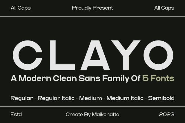 Clayo Font – Modern Clean Sans Family Font. A Sans-Serif font family available in different styles is a very versatile choice for graphic design and displaying clean, modern text. This Sans-Serif font family offers flexibility in graphic design, and its different styles allow you to customize the appearance of the text according to the needs of your project. With different combinations of regular, italic characters and different boldness levels, you can create an attractive and easily readable text display in different contexts