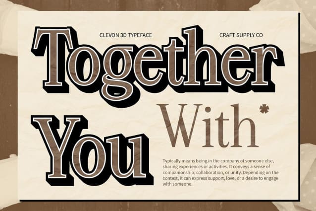 Versatile for Creative Projects with Lasting Impressions This font’s unique combination of classic serif characteristics and modern 3D effects provides versatility for a range of creative applications. Whether you’re designing elegant stationery, impactful branding, or sophisticated promotional materials, Clevon 3D elevates your work, leaving a lasting impression that resonates with your audience.