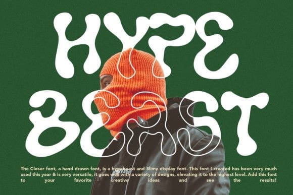 The Closer font, a hand drawn font, is a hypebeast and Slimy display font. This font I created has been very much used this year & is very versatile, it goes well with a variety of designs, elevating it to the highest level. Add this font to your favorite creative ideas and see the results!