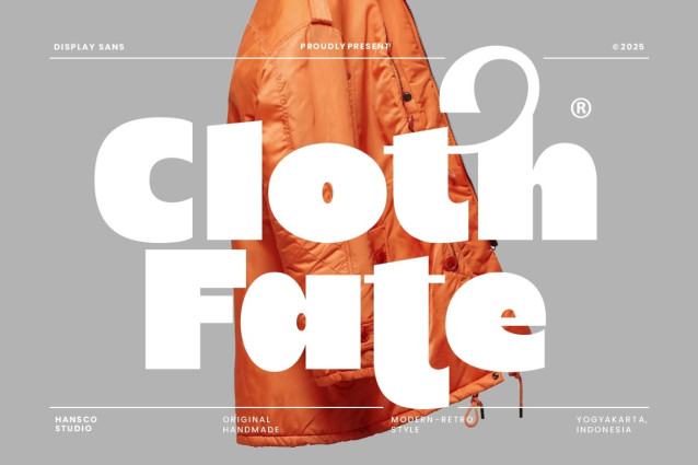 Cloth Fate Font is a display bold sans serif font with modern look!. Equipped with all complete characters ranging from lowercase, uppercase letters, numbers, punctuation marks and multi-lingual support, this font is ready to be used in any project. Very suitable for Logotype, Stickers, Packaging design, Cricut Project, Headlines, Brand identity, Posters, Magazines, Books, YouTube, Instagram, Websites, Canva, Corjl or any of your creative design projects.
