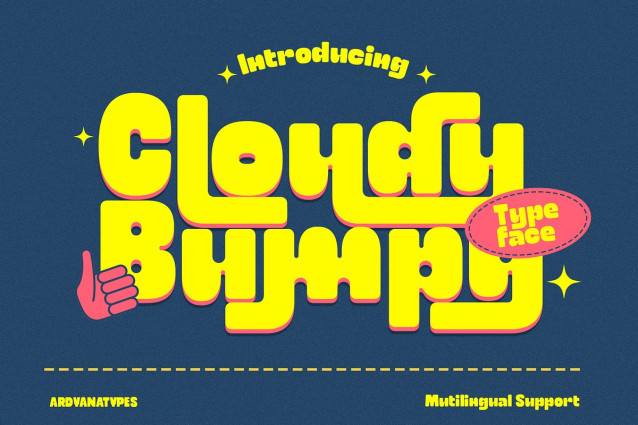 Cloudy Bumpy Font is a super bold display typeface with soft curves and vibrant personality. Designed with thick strokes and playful “bumpy” contours, it delivers a cheerful, energetic, and highly expressive visual impact.