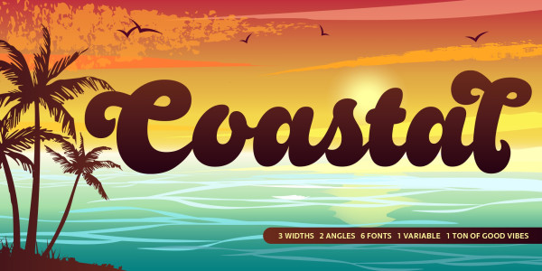 Three widths (not squeezed or stretched) and two angles (no shortcuts) make every attempt to give you what will need and what you might need. And if that doesn’t work, Coastal is available as a multi-axis variable font to tickle your typographic fancy. So, mix up some mai tais, grab your keyboard, and let the sunny vibes of Coastal meet you at the beach.