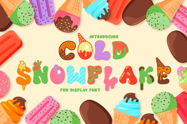 This font is used only for demos (Demo license). If you want to use this font for commercial use please contact: https://creativemarket.com/putracetol/91613898-Cold-Snowflake-Quirky-Ice-Cream-Fo?u=fontlot123