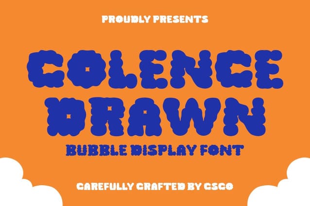Artistic Drawn Effect The drawn effect of Colence Drawn introduces a manual, artistic touch that enhances the font’s unique and playful character. This artistic detail adds a personal and hand-crafted quality, giving the font a distinctive and charming appeal. The combination of bubble shapes and the drawn effect results in a font that stands out with its creative and joyful atmosphere.