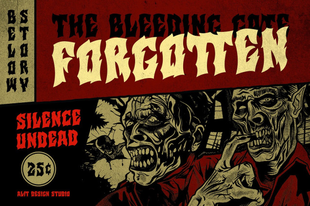 Comangs Font – Thorned. Twisted. Terrifying. Proudly handcrafted by Alit Design Studio 2025, the ComangsTypeface is a viciously bold, dark letter font built for creators who dare to disturb. Inspired by sadistic cartoon horror, street metal art, and the shadows of urban nightmares, Comangs is a display font that claws into the eye and doesn’t let go.