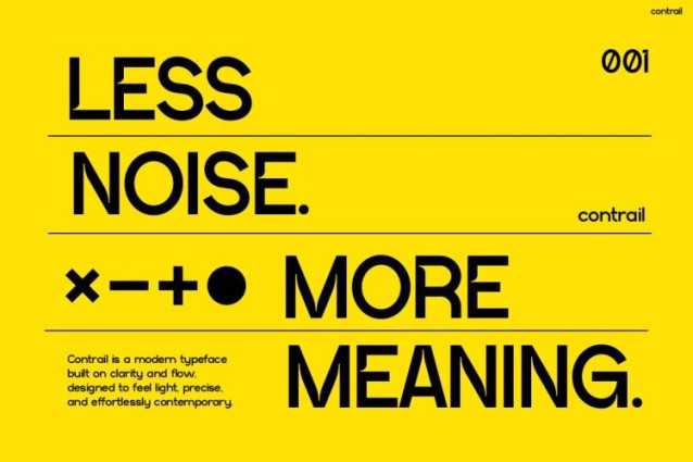 Contrail Font is a bold and modern display typeface designed to deliver clarity, intention, and strong visual impact. From the very first impression, this font communicates confidence and control. Its clean geometric forms, sharp edges, and balanced proportions create a futuristic aesthetic that feels both minimal and expressive. Moreover, every character is carefully crafted to reduce visual noise while increasing meaning, making text look deliberate and powerful. CONTRAIL stands out because it blends modern typography trends with functional readability. As shown in the previews, it performs exceptionally well in high-contrast layouts, bold color compositions, and contemporary design systems. Therefore, this font is not only visually striking but also highly practical for real-world creative use.