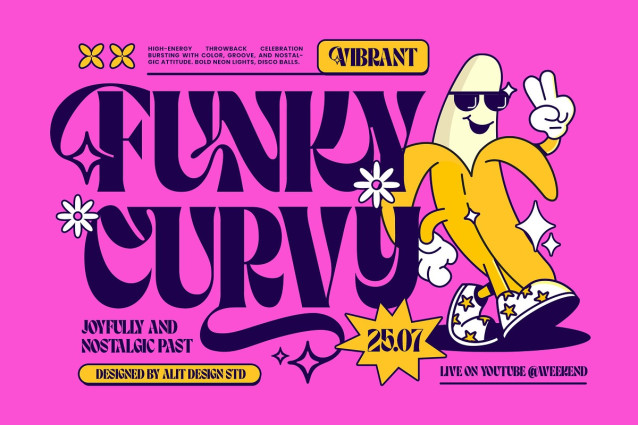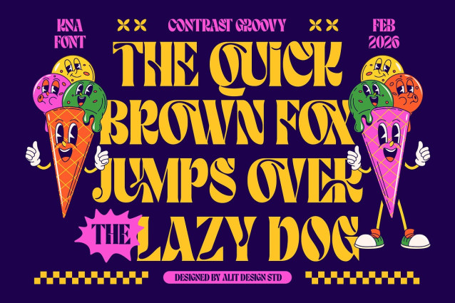 Contrast Groovy Font a bold, high-contrast serif that perfectly captures the funky, vibrant essence of the 1980s. Designed for those who want their typography to speak with personality and rhythm, this font blends vintage nostalgia with a sharp, modern execution.