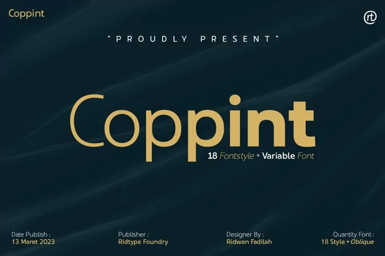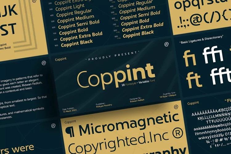 Coppint Sans Serif Font is a font formed with serenity and imagery in patterns that refer to warmth and harmony. Even so, this font also gives each letter an elegant and semi-modern impression. When this font was created, Ridwan Fadilah, the designer, said that this font must race in a contextual and basic fundamental hierarchy.