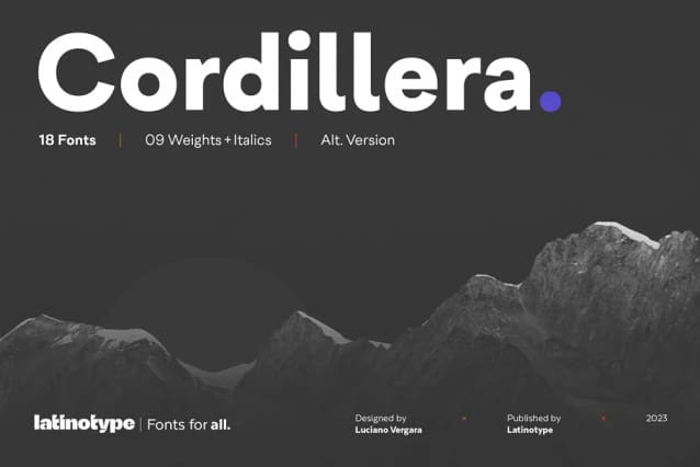 Cordillera Font Family, a new sans serif designed for corporate use, which mixes classic proportions, geometric and neo-grotesque characters.