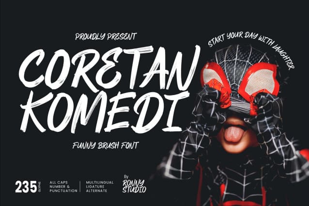 This font is made for personal use. Get the full version of the fonts if you want to use it for commercial purposes by purchasing the licenses here: https://creativemarket.com/Ronny_Studio/290848899-Coretan-Komedi-Funny-Brush-Font?u=fontlot123
