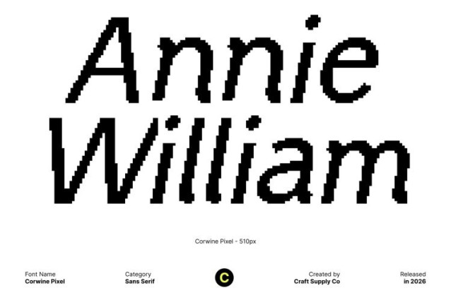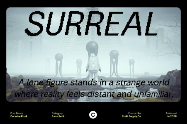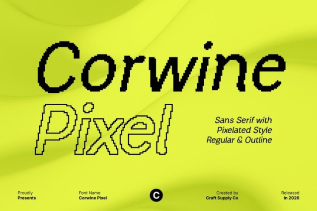 Corwine Pixel Font This is a modern sans-serif font designed to balance clarity, simplicity, and visual confidence. Its clean structure and minimalistic forms create a polished appearance that feels professional yet approachable. Built with a pixel-inspired foundation, this font subtly nods to digital aesthetics while maintaining a refined and modern look suitable for today’s design standards.