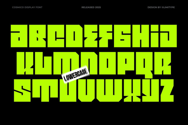 Cosmico Font is a bold modern font with a sharp and strong character. Designed to stand out and look professional, it’s suitable for branding, headlines, posters, and digital designs that need a strong, modern, and futuristic feel.