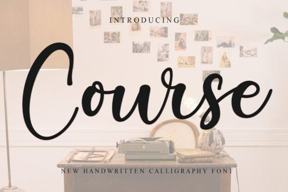 Course Script Font is an enchanting handwritten font. This versatile script font has a wide spectrum of applications ranging from greeting cards to headlines and is guaranteed to add a romantic feel to your next project.