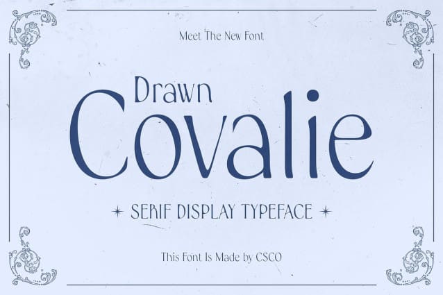 Covalie Drawn Font is a modern serif font that showcases a clean design infused with beauty and elegance. Its fine lines intertwine seamlessly with intriguing details, creating a graceful and enchanting impression. The sophisticated aesthetic of Covalie Drawn makes it an excellent choice for projects that demand a touch of refinement and artistic appeal.
