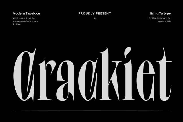 Crackiet Font style is the sharp, extreme curves at each terminal, which give the font a Bold, Angry personality. Modern vibes add an extra layer of visual appeal to this font.