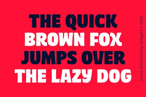 Crazy Rich Font is a bold and attention-grabbing font that stands out with its unique combination of thick letterforms and slightly rounded edges. The design gives it a friendly yet powerful look, ideal for headlines, logos and branding that need a strong statement. The font’s distinctive character set, which includes both regular and italic styles, offers flexibility in creating dynamic and engaging layouts. The uppercase letters are particularly striking, giving a confident, solid feel, while the lowercase letters offer a more accessible and readable option.