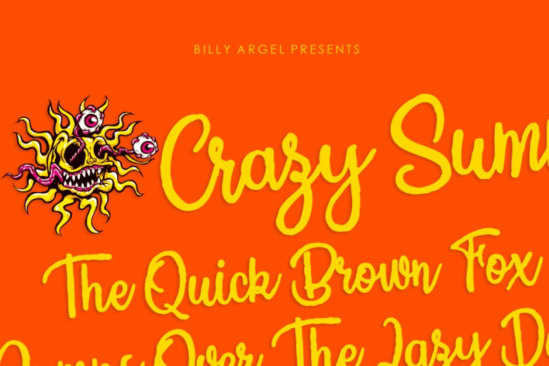 This font is demo font free for personal use only, contact designer for commercial use: https://billyargel.com/product/crazy-summer/