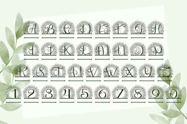 Cresverde Split Monogram Font is an elegant serif monogram font with a refined split layout and graceful botanical flourishes. Each uppercase letter features a centered gap designed for personalization—perfect for names, dates, or short messages. Ideal for wedding stationery, branding, packaging, and gift designs, this font adds timeless structure with a soft, organic twist.