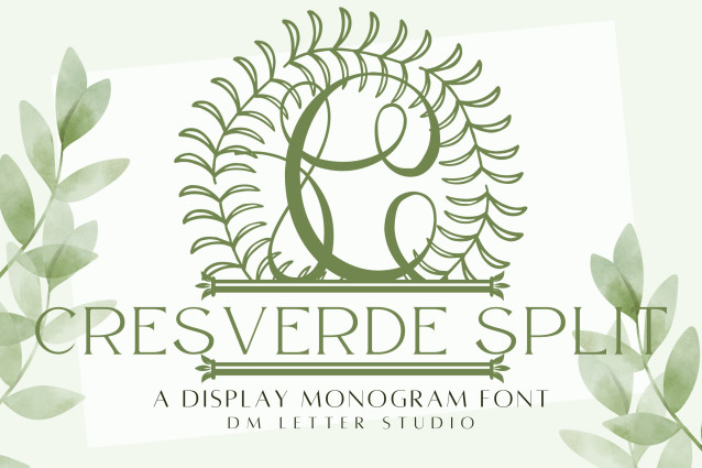 This font is used only for demos (Demo license). If you want to use this font for commercial use please contact: https://dmletterstudio.com/product/cresverde-split-monogram/